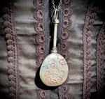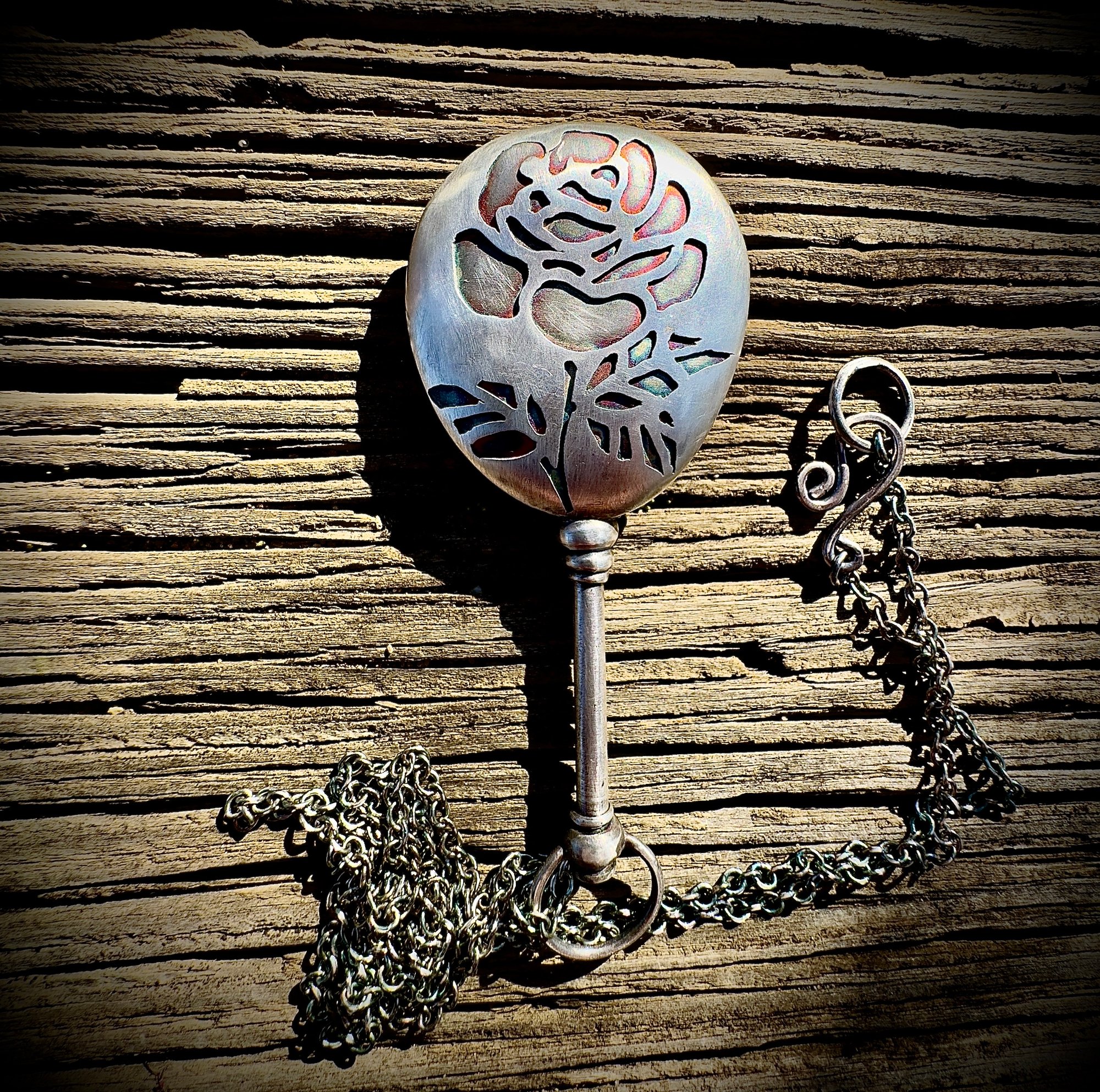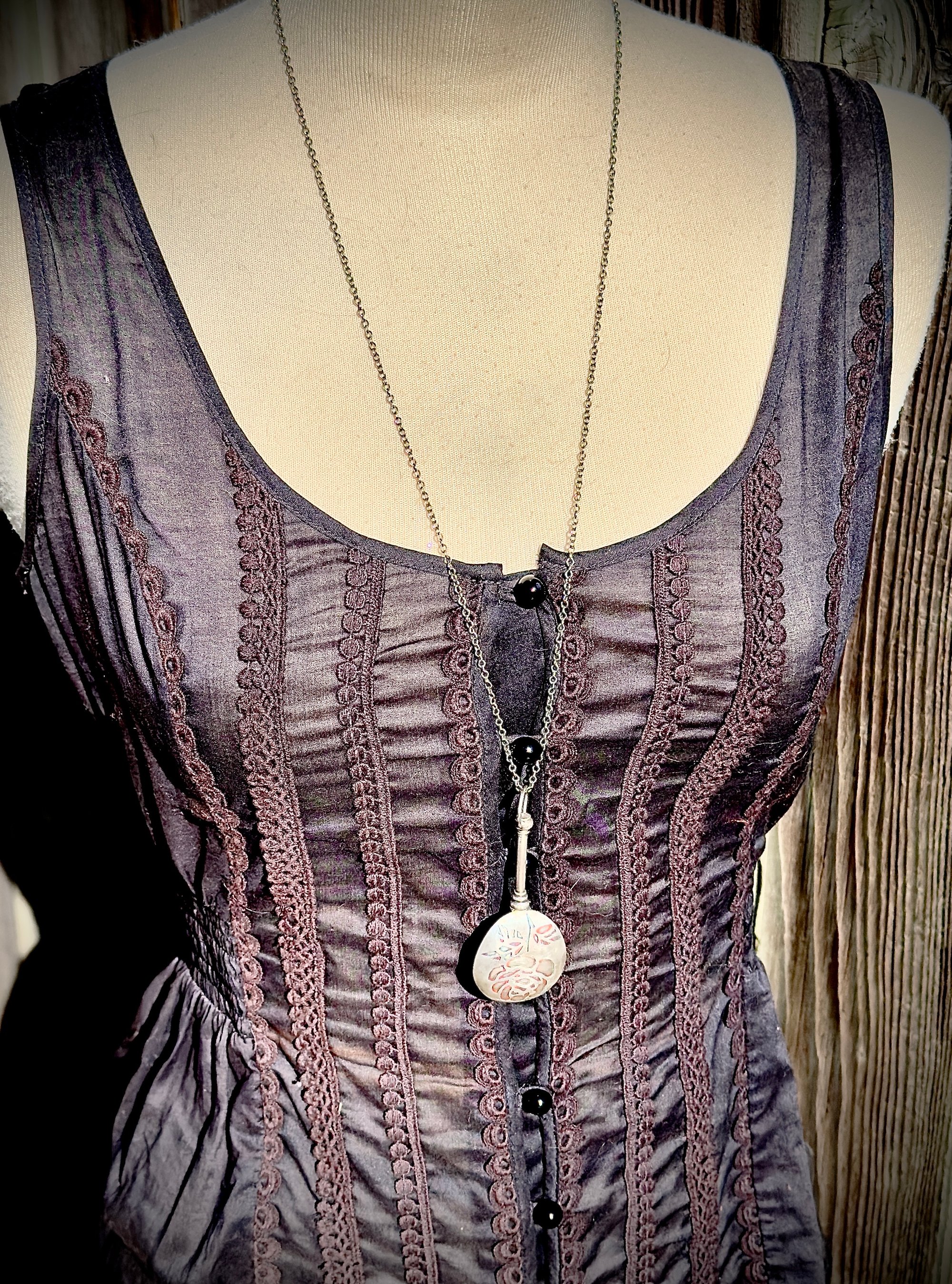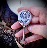 the mirror is 2.875" long and 1.25" wide. the length of chain is 28"