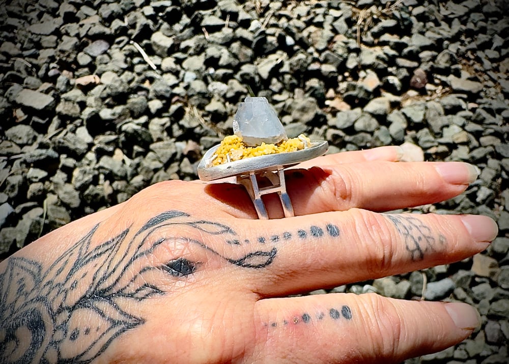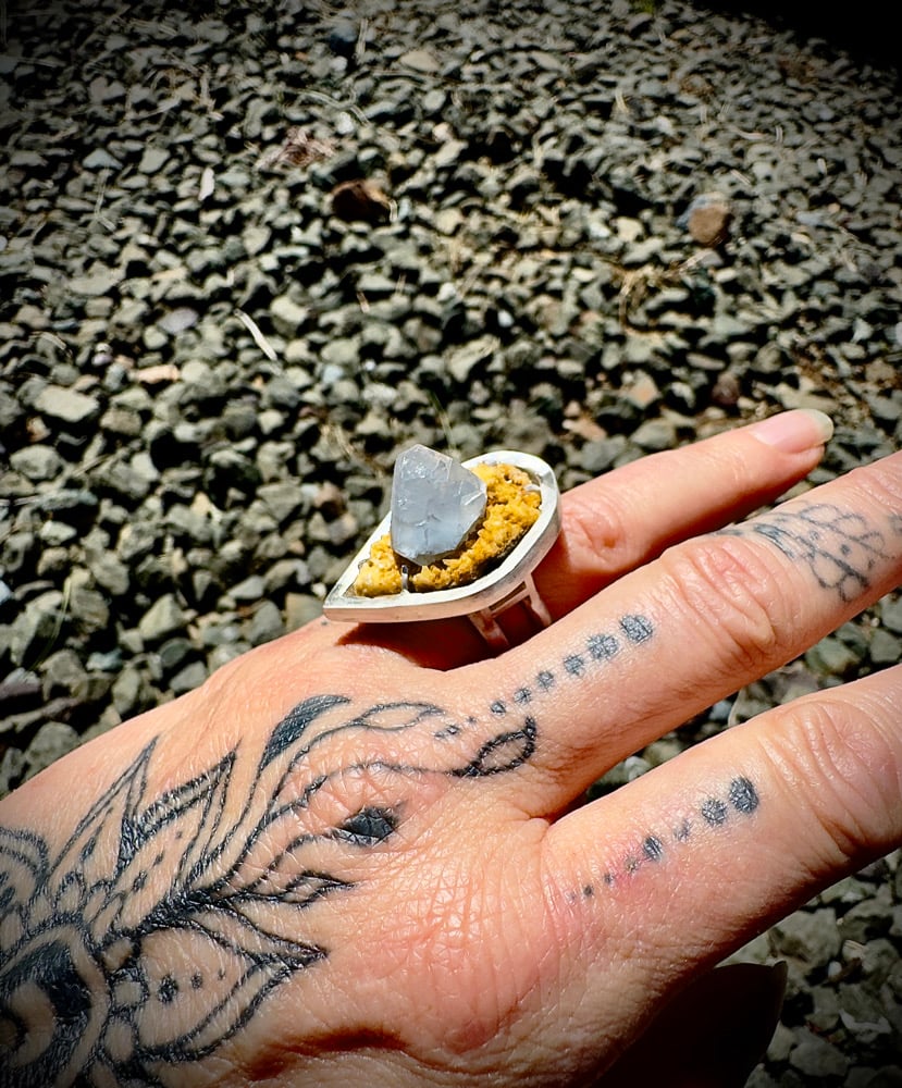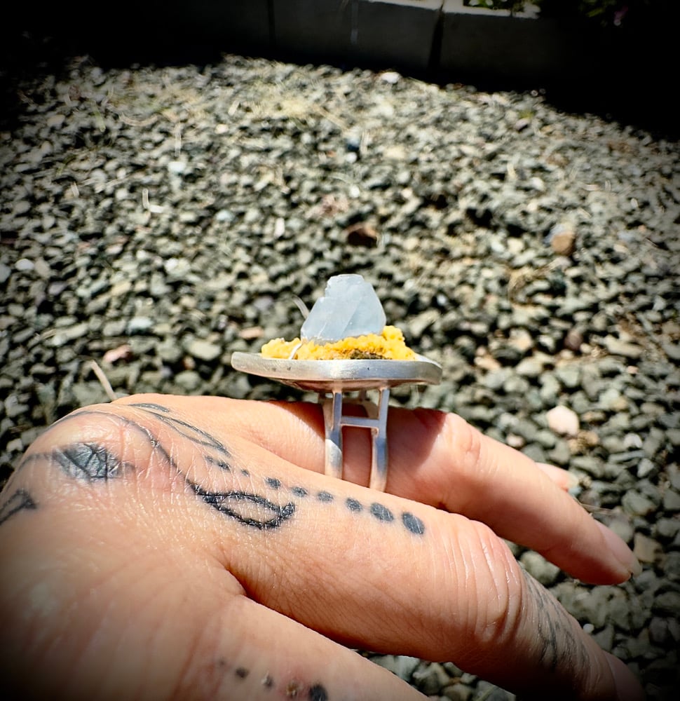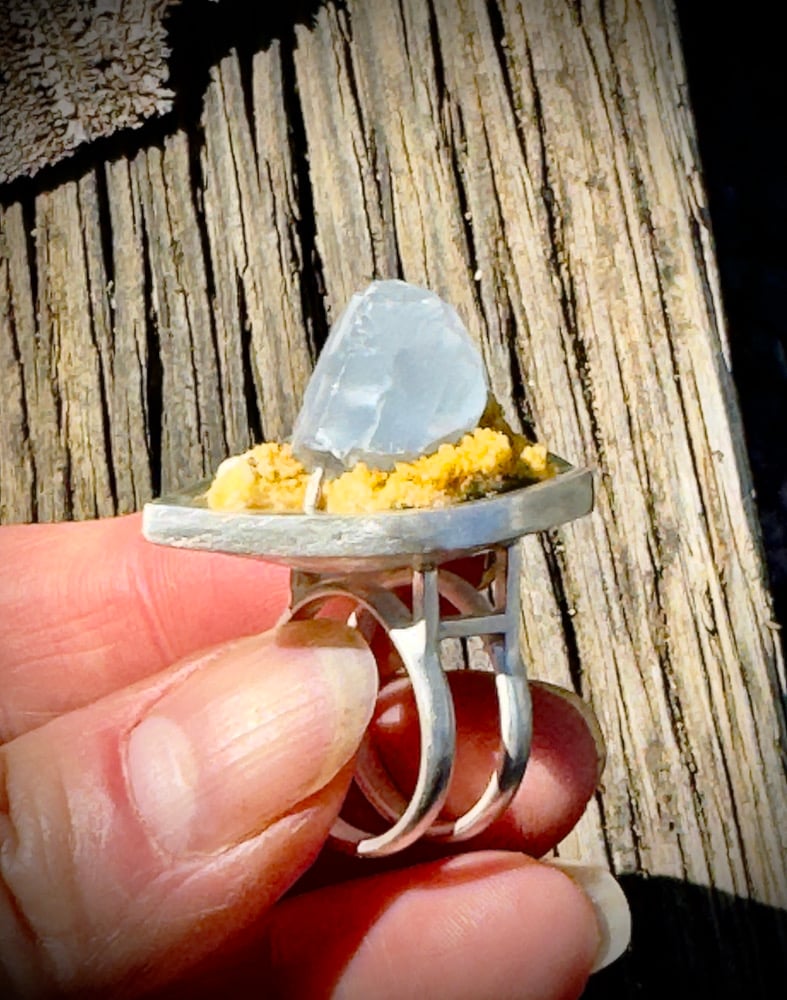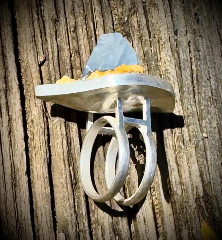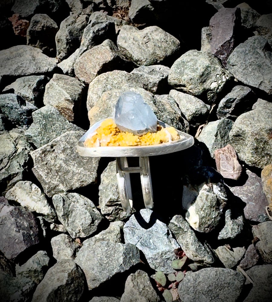 Sterling Silver, and Celestite on Calcite