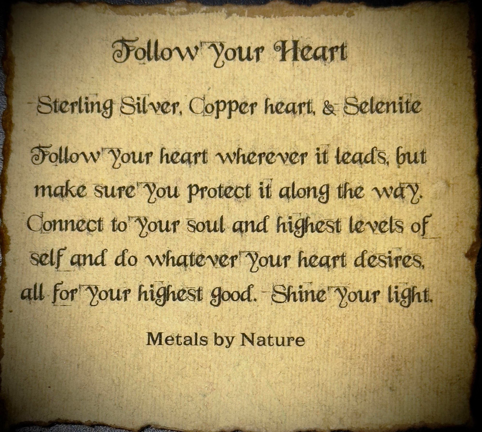 Sterling Silver Ring with Copper heart and Selenite Stone.