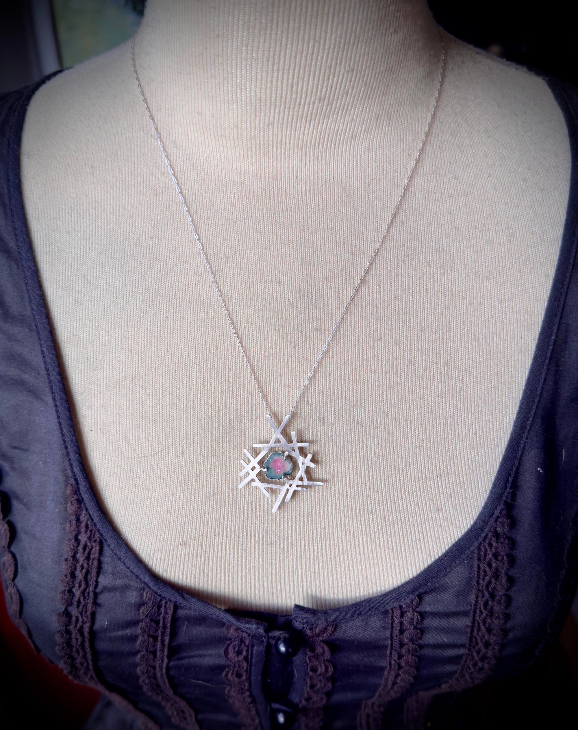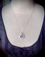 Chain is 20" long, Pendant is 1.5" long x 1.25" wide