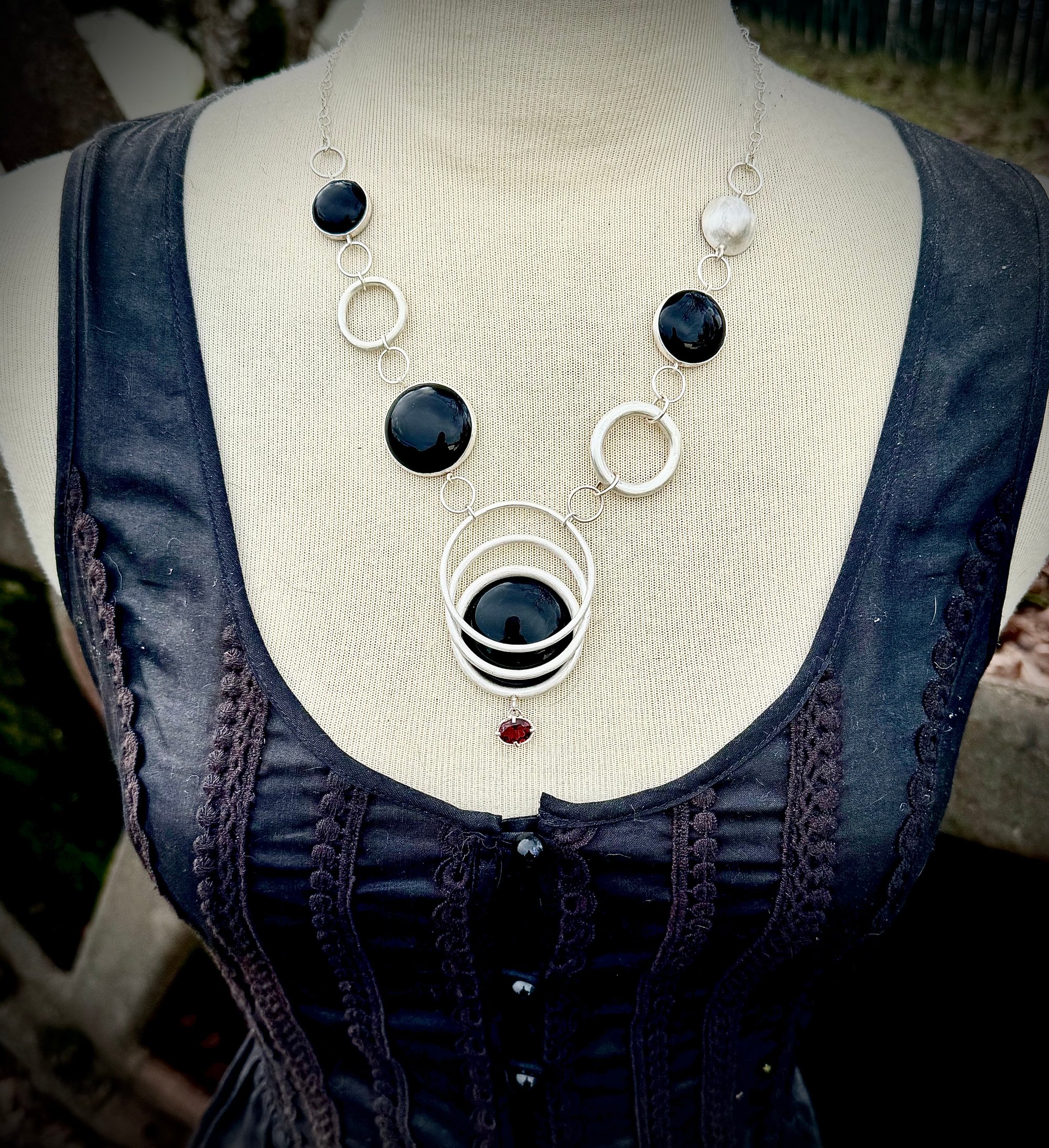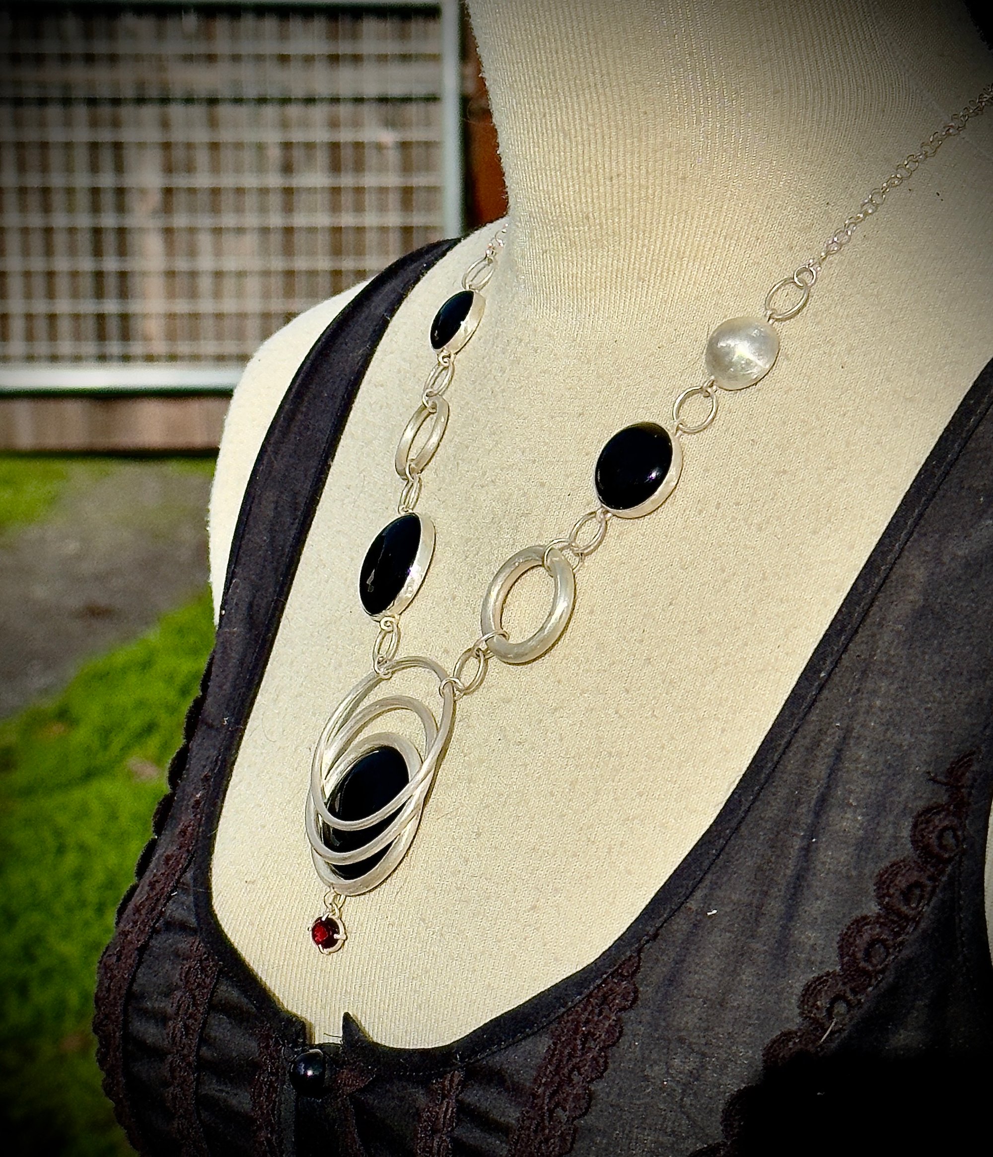 Sterling Silver, Black Onyx, & Pink Tourmaline