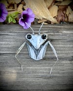 pin measures 2.5” from top antennae to bottom leg. widest part of legs is 2”