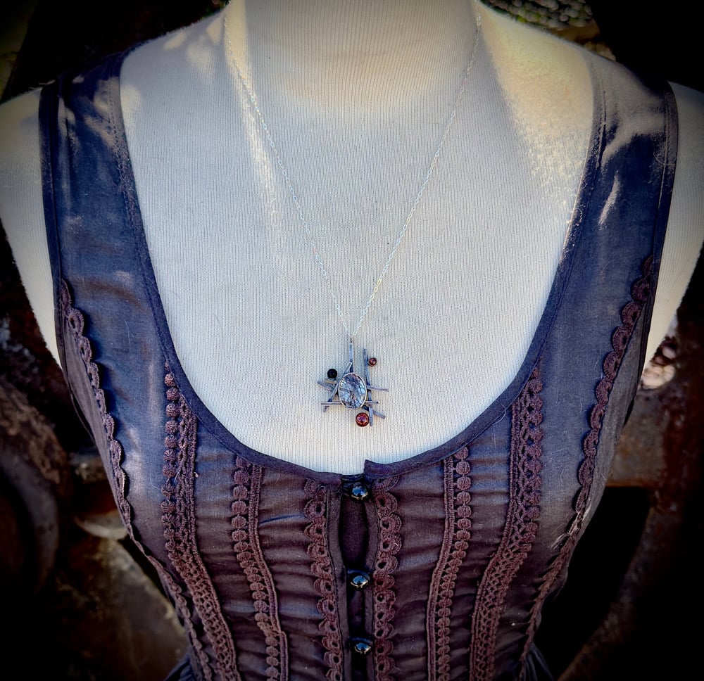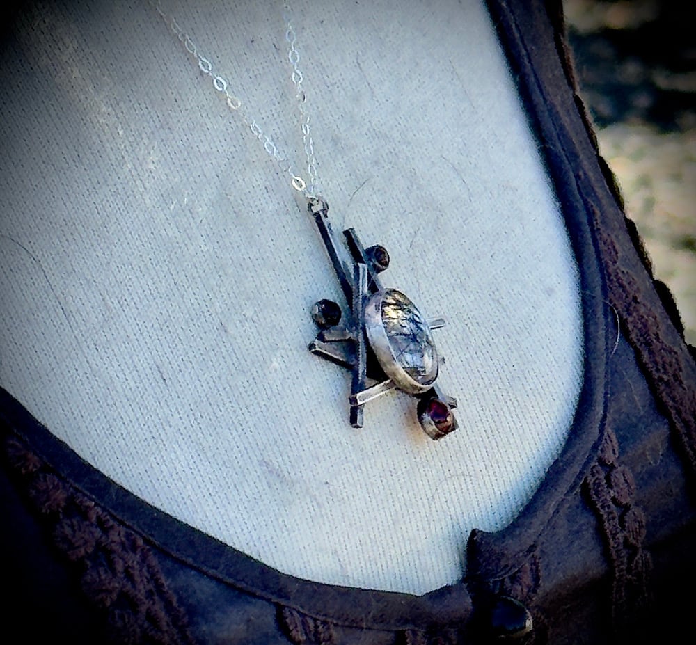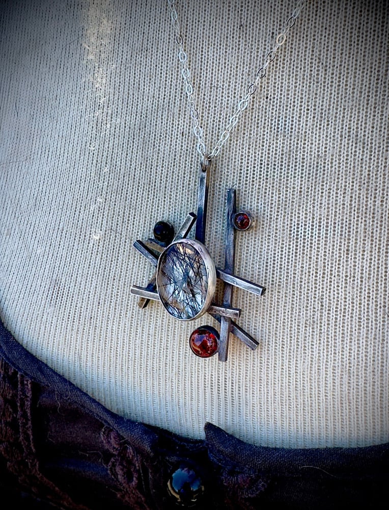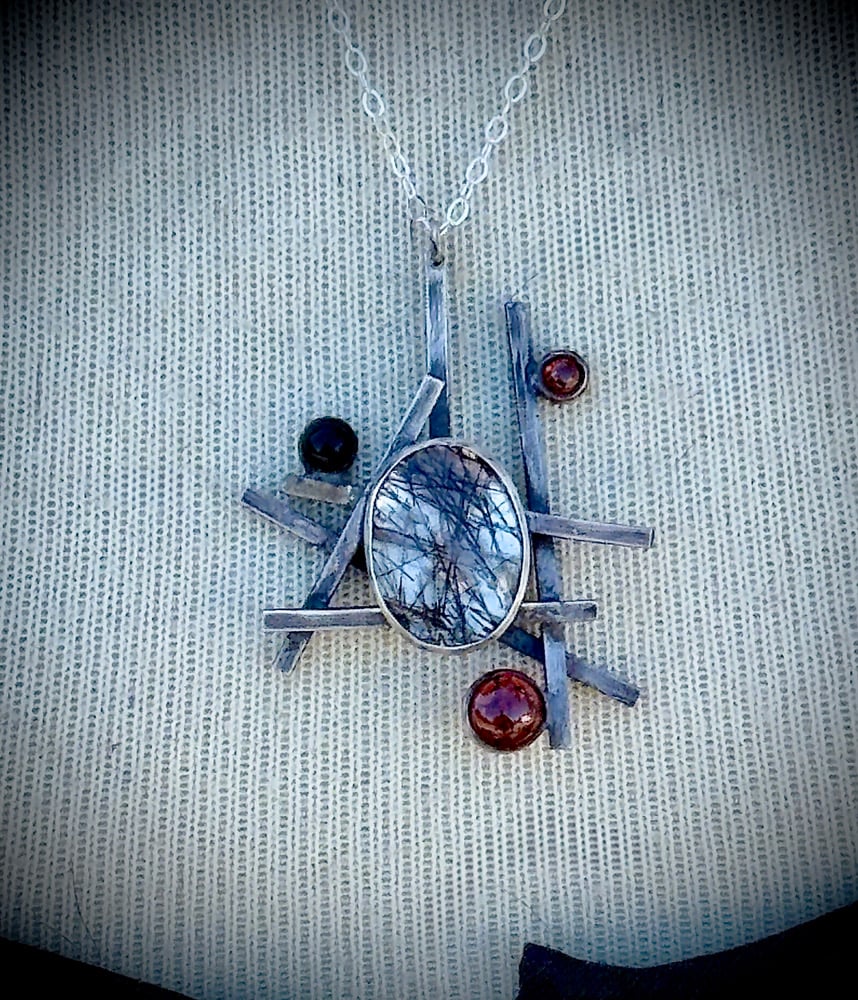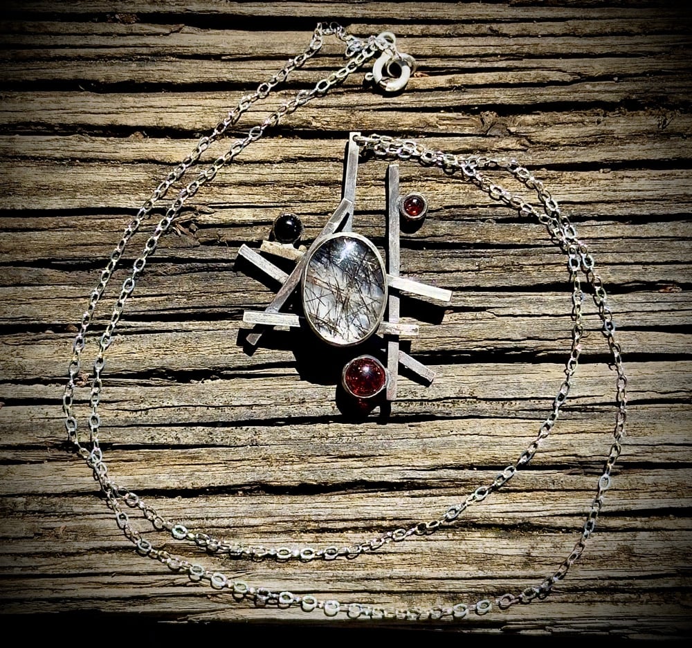 Sterling Silver, Tourmalated Quartz, Garnet, & Black Onyx