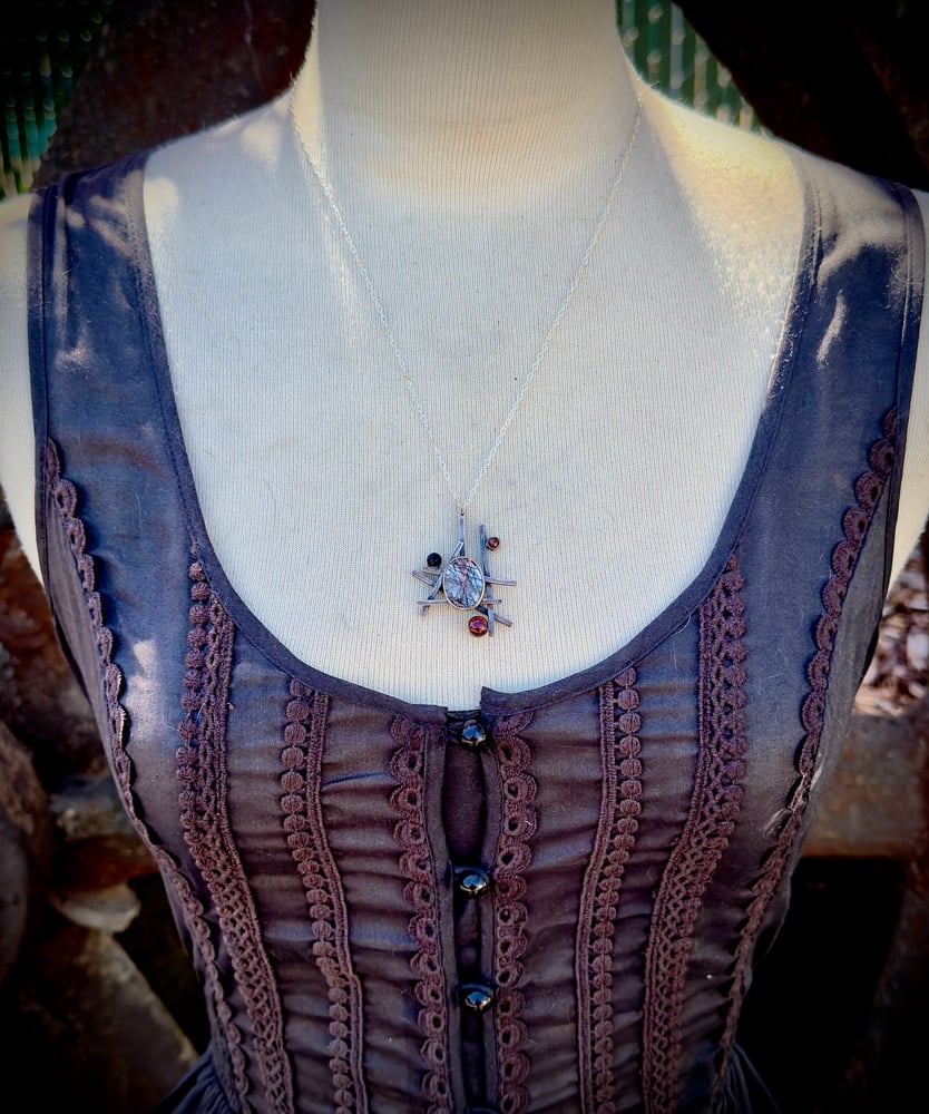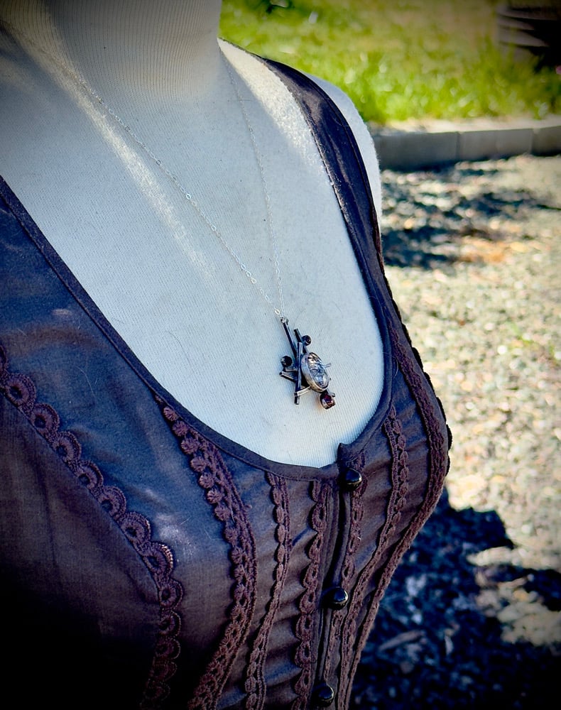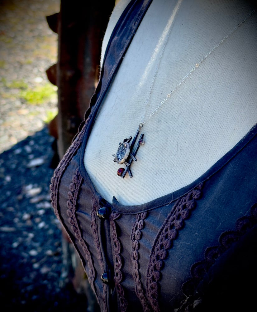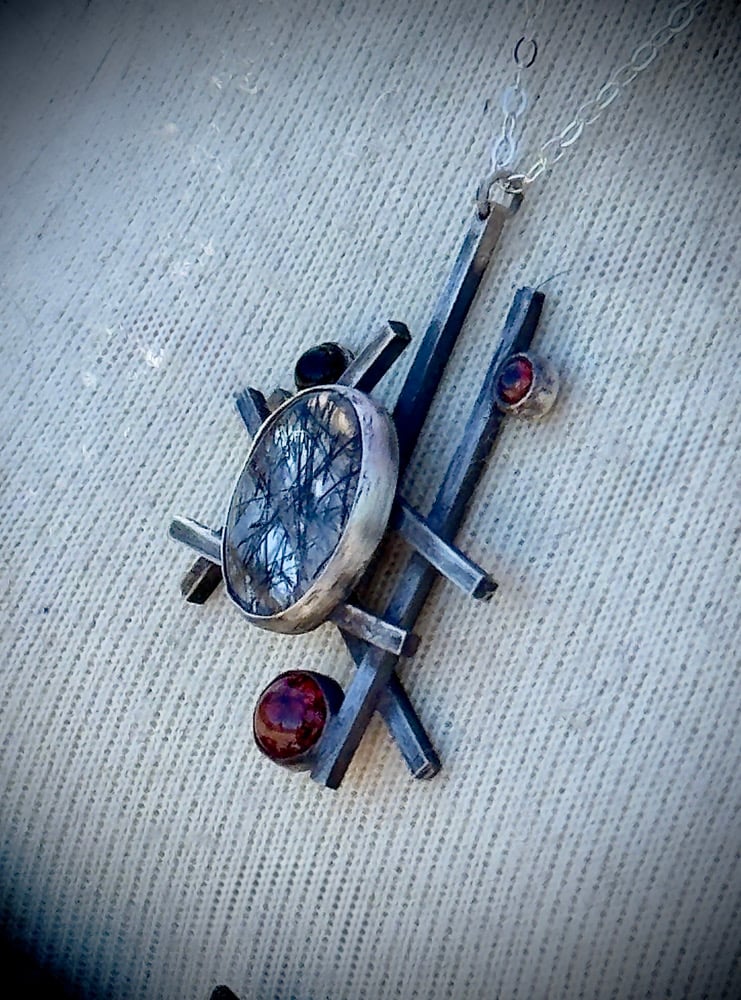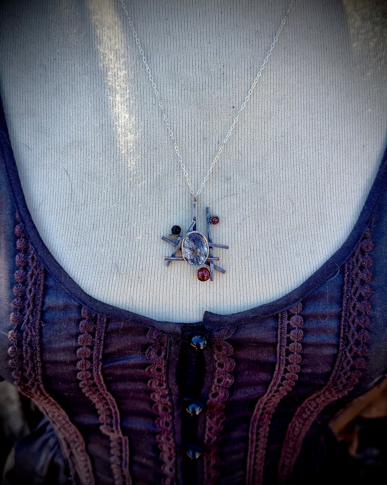 Sterling Silver, Tourmalated Quartz, Garnet, & Black Onyx