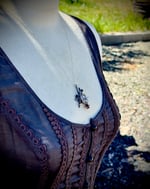 Chain is 20”, pendant is about 1.5” x1.5”