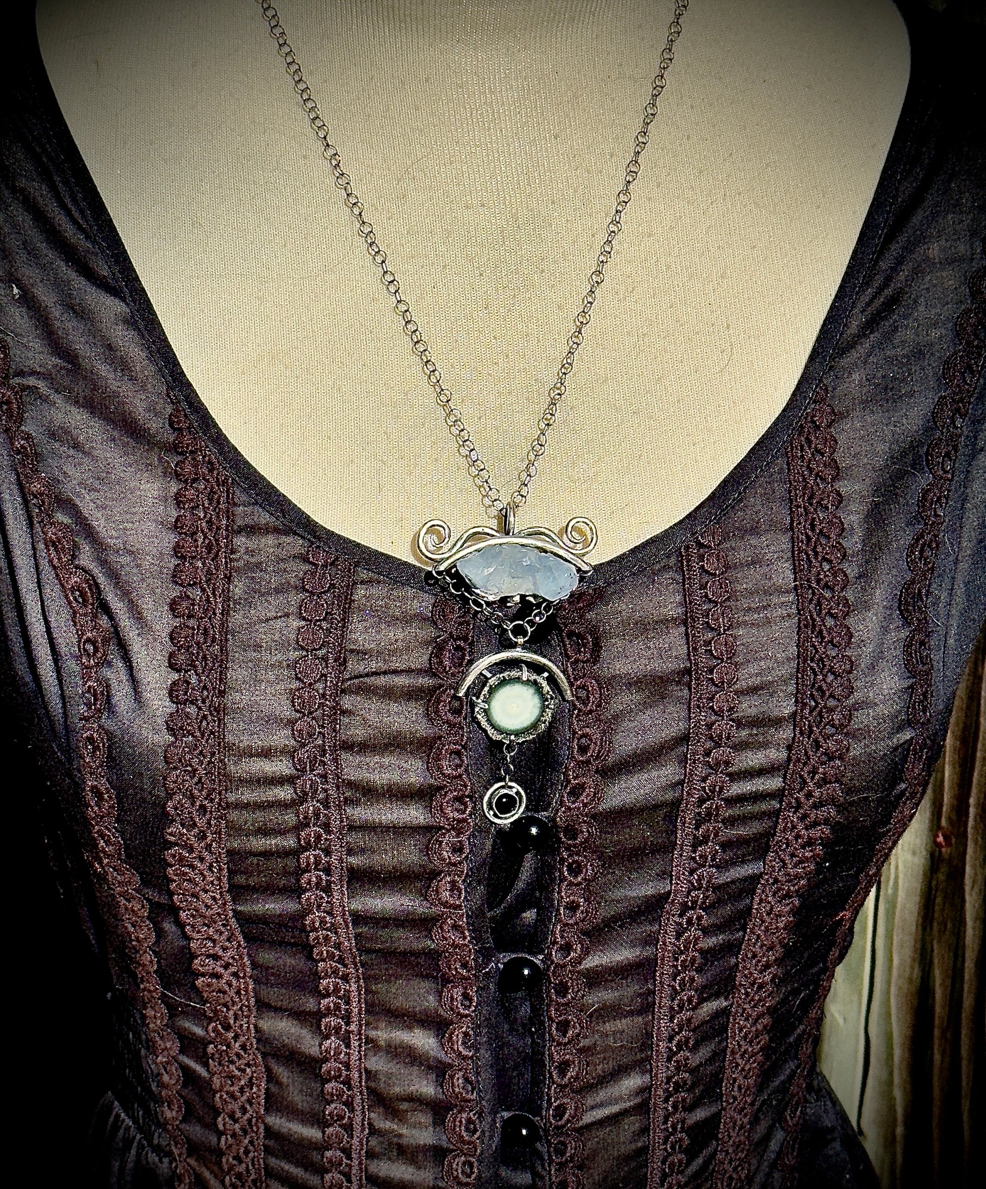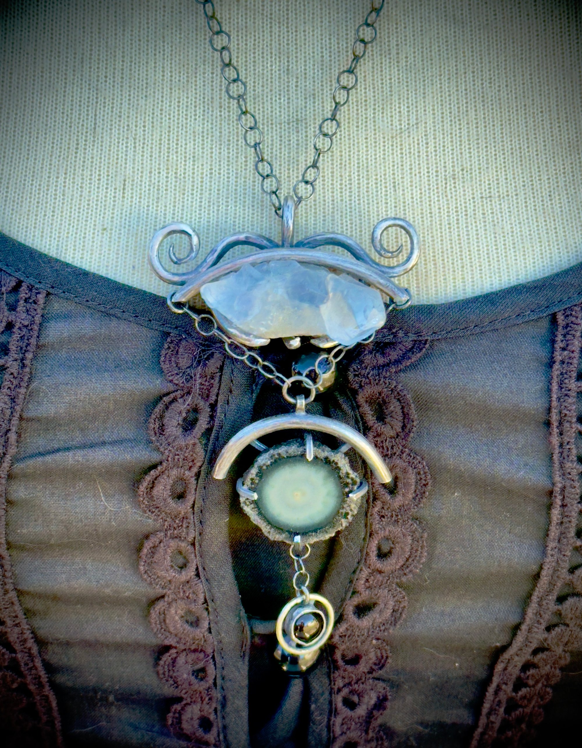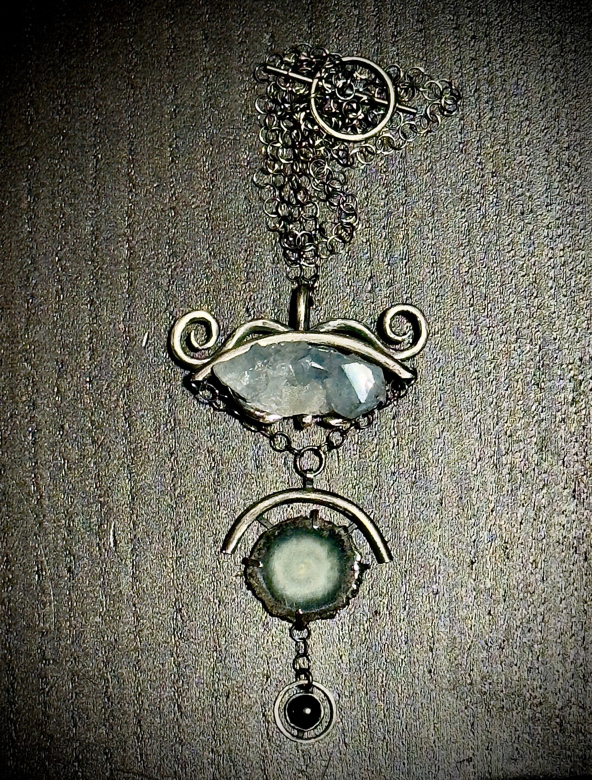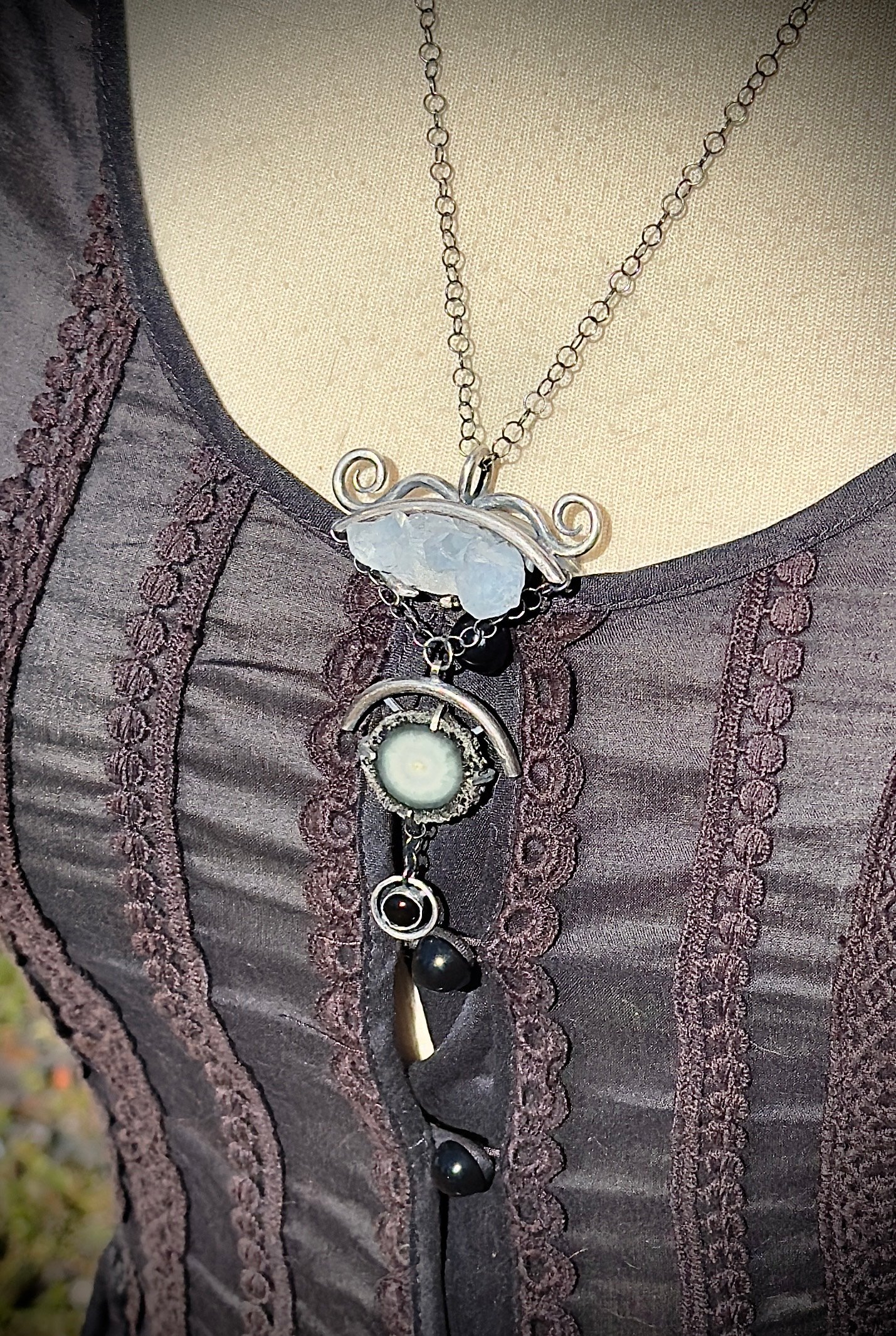 Sterling Silver, Black Onyx, Gray Amethyst Stalactite, & Celestite