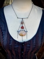 Chain is 19”, largest stone measures 1.5” wide. Drop of pendant is 3.75”