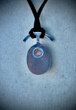 Necklace is 18”. Pendant drops 1.5” and is 1.125” at it’s widest point. Stone is 1.125” x .875”. The clasp is magnetic with a crew on cover to hold it together.