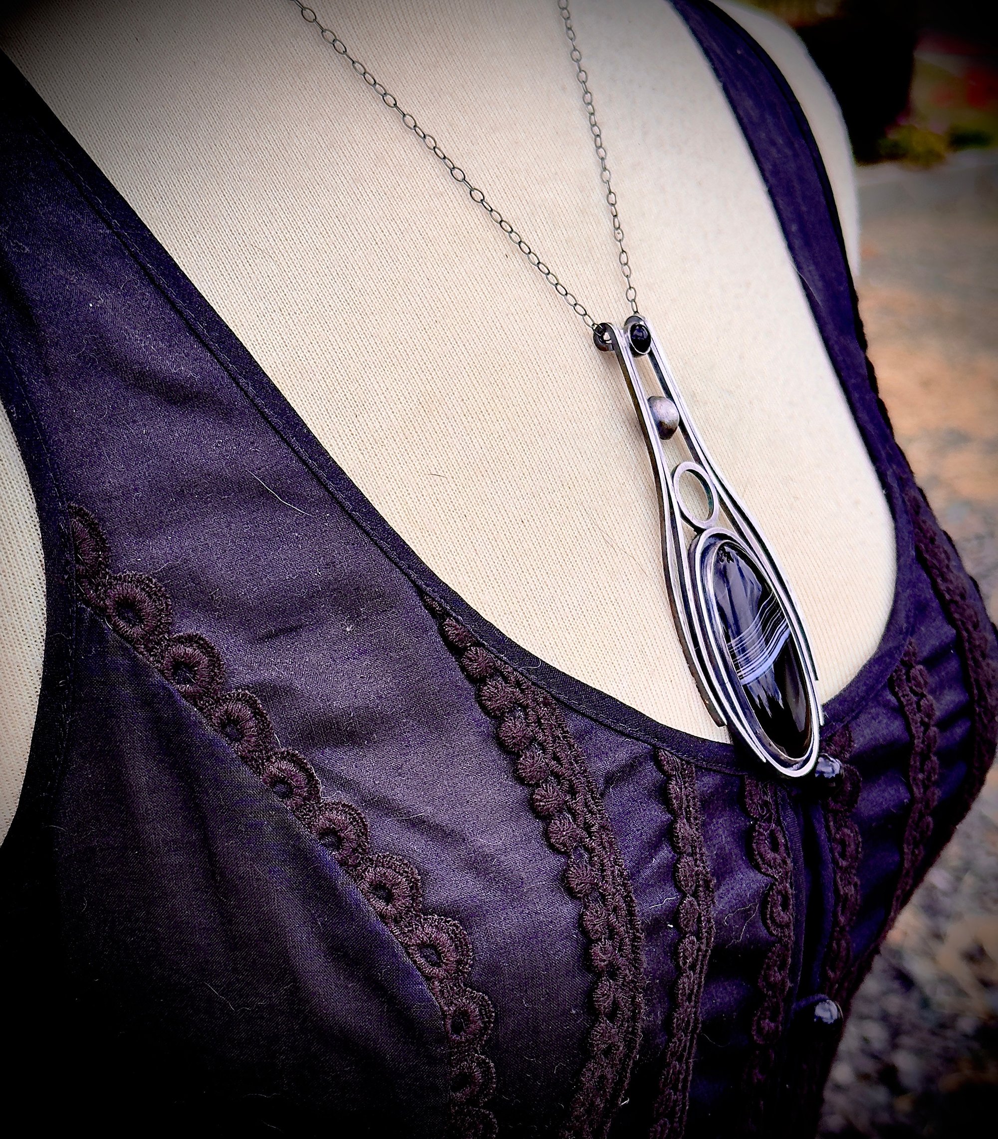 Necklace is 19" long. pendant measures 4" long and 1.625" at widest part. Large stone is 1.75" long and .875" wide.