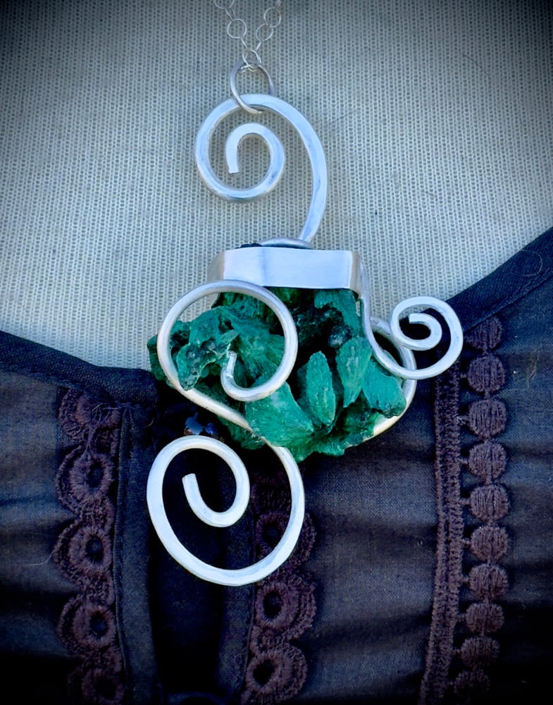 Sterling Silver & Fiberous Malachite